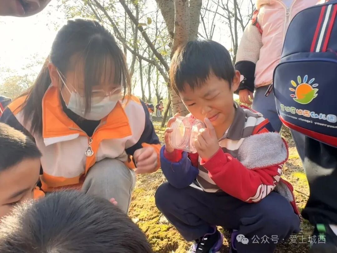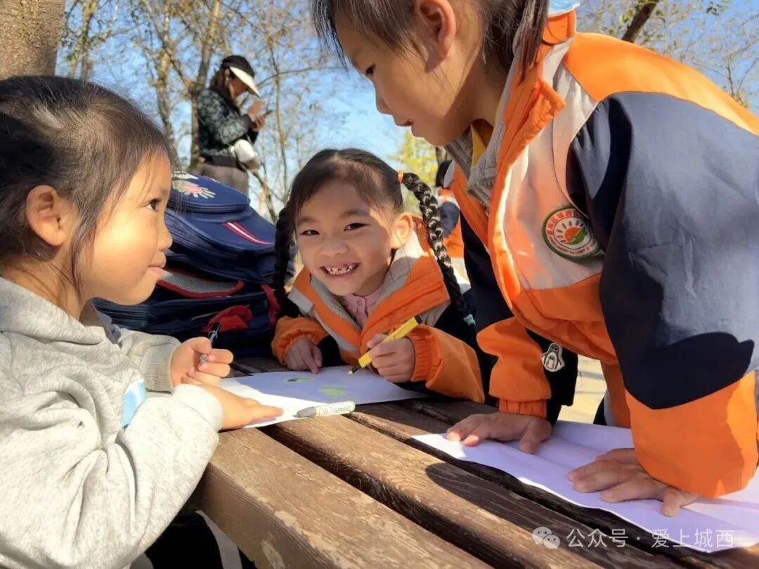 抵達(dá)玉湖公園后,孩子們按小組開展探索任務(wù),在合作中感受自然之趣。公園成為他們的“天然游戲場(chǎng)”,大家在互動(dòng)中學(xué)會(huì)分享、協(xié)作與發(fā)現(xiàn),充分體現(xiàn)了“村園相融”的理念,環(huán)境對(duì)幼兒發(fā)展的積極影響。