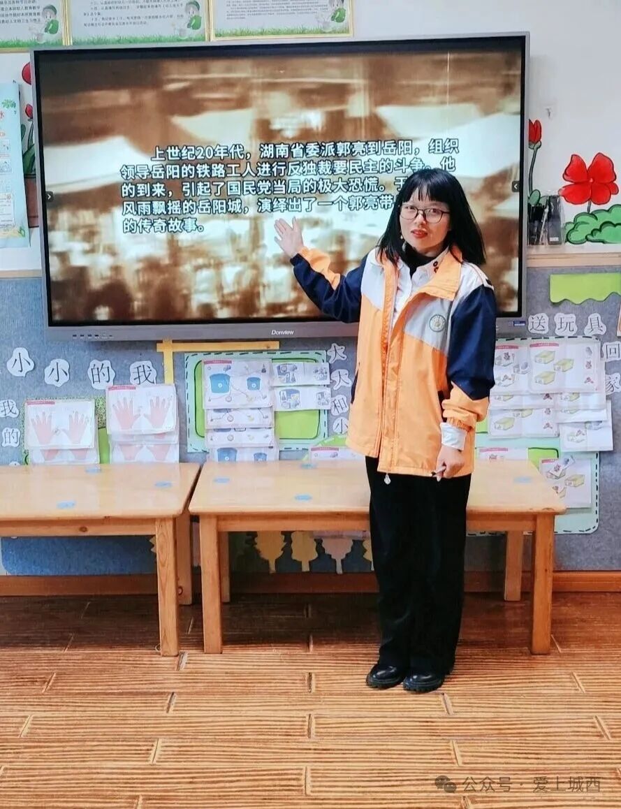 我們從幼兒園出發(fā),途經(jīng)喻家坡西路、聚源路、旺旺西路、郭亮路,孩子們帶著滿滿的收獲安全歸來(lái)?;顒?dòng)中,每一位孩子都化身為專注的“小觀察家”和勇敢的“小探險(xiǎn)員”。在了解郭亮路的故事時(shí),孩子們聽(tīng)得格外專注,小眼睛里閃爍著好奇的光芒。他們用稚嫩的語(yǔ)言提問(wèn):“這條路為什么叫郭亮路呀?”“郭亮是一位很厲害的超人嗎?”純真的話語(yǔ)背后,是他們對(duì)英雄最初的崇敬與想象。