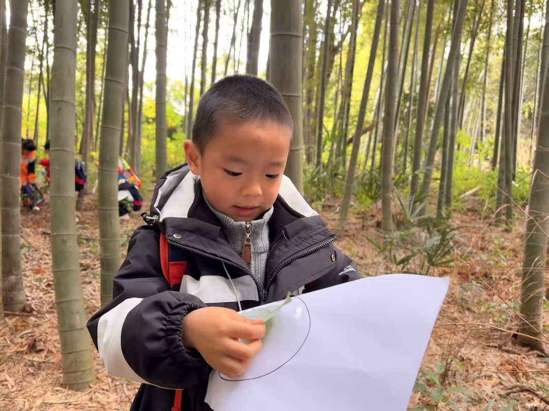 孩子們拿著瓶子和彩筆,蹲下身子,專注地觀察著竹節(jié)的規(guī)律、竹葉的脈絡(luò),以及藏在竹林里的“小居民”——一只忙碌的蜘蛛,一片奇特的苔蘚,都成了他們畫筆下的主角。這份專注,是對觀察力最細致的培養(yǎng)。