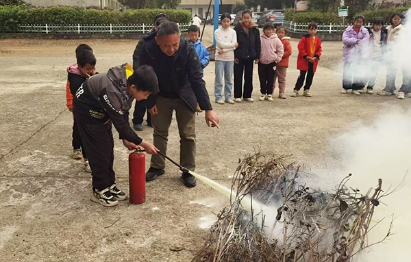 火災(zāi)逃生演練中,學(xué)校安全員指導(dǎo)學(xué)生掌握正確的逃生路線和防護(hù)方法,并開(kāi)展滅火實(shí)操教學(xué),演示滅火器“提、拔、握、壓”四步操作法,結(jié)合校園常見(jiàn)火情案例,細(xì)致講解滅火器的適用場(chǎng)景、操作技巧及安全注意事項(xiàng),進(jìn)一步鞏固學(xué)習(xí)成果。