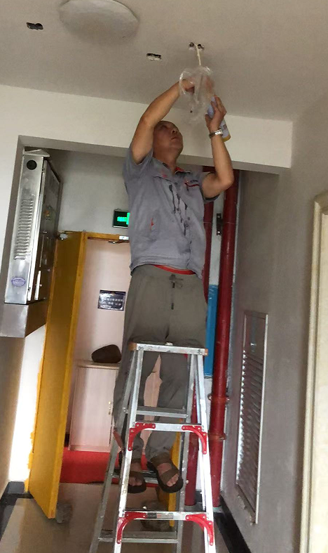 僅四天后,3 月 12 日晚 8 點多,大雨滂沱中,1 棟一單元 502 房廚房突發(fā)滲水,水已蔓延至客廳和公區(qū)電梯口。剛準(zhǔn)備休息的田麗接到電話,當(dāng)即冒雨趕往現(xiàn)場,召集兩名維修員共同處置。他們頂著積水更換破損管道,奮戰(zhàn) 2 個小時成功止損,最大限度減少了業(yè)主的損失,業(yè)主感激不已。