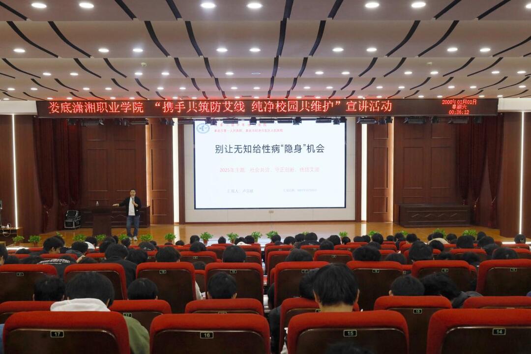 當(dāng)天下午,防“艾”知識講座在多媒體報告廳舉行,主講人系婁底市第一人民醫(yī)院泌尿男科副主任、副主任醫(yī)師盧宗獻(xiàn)。他以《“性”福不設(shè)防,“艾”你沒商量》為題,從醫(yī)學(xué)專業(yè)角度,系統(tǒng)闡述了包括艾滋病在內(nèi)的性傳播疾病的流行現(xiàn)狀、傳播機(jī)理、危害性以及核心預(yù)防策略。并結(jié)合真實案例,重點(diǎn)強(qiáng)調(diào)了主動檢測、早期診斷、規(guī)范治療的重要性,并澄清了日常接觸不會傳播艾滋病等常見誤區(qū),引導(dǎo)同學(xué)們樹立正確的性觀念和健康責(zé)任感。