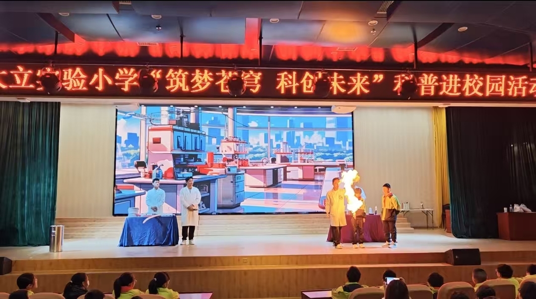 活動伊始,通體白色、搭載微型傳感器的機器狗率先登場,靈活完成后空翻、匍匐前進等高難度動作,并配合音樂跳起機械舞,瞬間點燃了同學們的熱情。隨后在《永恒的星辰:陳能寬》科普劇中,師生們共同走進科學家的世界,感人的故事讓同學們深刻體會到科學家精神的力量。最后,《冰與火之歌》科學秀精彩上演,科學老師分成“火之隊”與“冰之隊”展開比拼,帶來吹不滅的蠟燭、液氮懸浮術、超酷火龍卷等實驗,在歡聲笑語中帶領同學們探索燃燒三要素和液氮特性等科學原理。