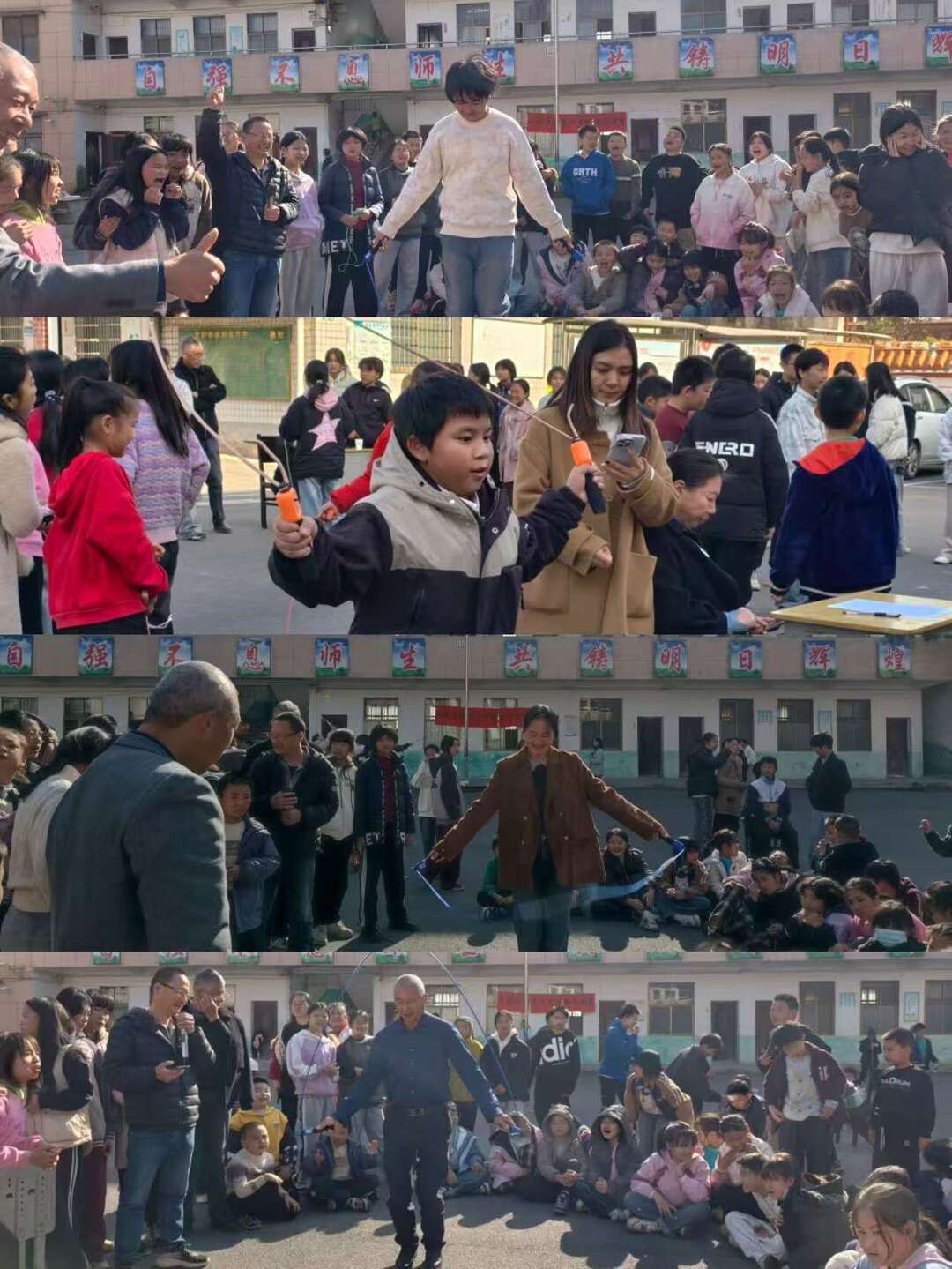 家長(zhǎng)會(huì)結(jié)束后,一場(chǎng)別開(kāi)生面的跳繩比賽拉開(kāi)序幕。隨著裁判員一聲令下,彩繩翻飛如銀蛇般舞動(dòng),賽場(chǎng)瞬間成為活力迸發(fā)的舞臺(tái)。學(xué)生組中,選手們身輕如燕,腳尖輕點(diǎn)地面,短繩賽的極速翻飛,展現(xiàn)出少年們的蓬勃朝氣;教師組的參賽老師們一改課堂上的嚴(yán)謹(jǐn)模樣,化身運(yùn)動(dòng)健將,與學(xué)生同場(chǎng)競(jìng)技,時(shí)而輕盈跳躍,時(shí)而穩(wěn)健節(jié)奏,引得場(chǎng)外加油聲、歡呼聲此起彼伏?!翱蠢蠋焻⒓颖荣愄_(kāi)心了,不僅感受到運(yùn)動(dòng)的快樂(lè),更覺(jué)得和老師的距離拉近了很多!”賽后,一名參賽學(xué)生興奮地說(shuō)道。經(jīng)過(guò)激烈角逐,比賽評(píng)選出多個(gè)優(yōu)秀班級(jí)與個(gè)人獎(jiǎng)項(xiàng),校領(lǐng)導(dǎo)為獲獎(jiǎng)學(xué)生頒發(fā)獎(jiǎng)狀和獎(jiǎng)品,鼓勵(lì)大家將競(jìng)技中的拼搏精神與協(xié)作意識(shí)融入日常學(xué)習(xí)生活。