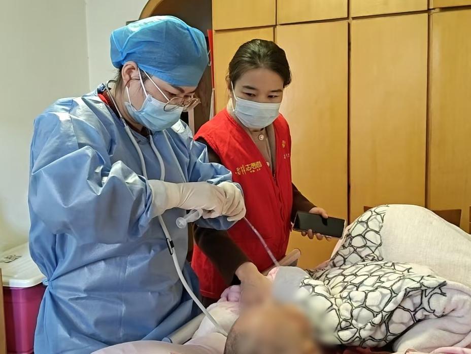 12月5日是第40個(gè)國(guó)際志愿者日,當(dāng)天中午,當(dāng)大多數(shù)人享受午休時(shí)光時(shí),長(zhǎng)沙市中心醫(yī)院(南華大學(xué)附屬長(zhǎng)沙中心醫(yī)院)全科醫(yī)學(xué)科的“網(wǎng)約護(hù)士”周葵花、志愿者譚鑫護(hù)士長(zhǎng)卻拎著便攜醫(yī)箱,步履匆匆地前往102歲高齡的楊建國(guó)(化名)老人家中,為他重置胃管,重建“生命線”。