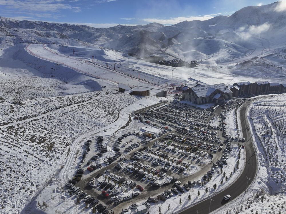 ?↑12月1日拍攝的新疆阿勒泰將軍山國(guó)際滑雪度假區(qū)。新華社發(fā)(明庭俊杰攝)