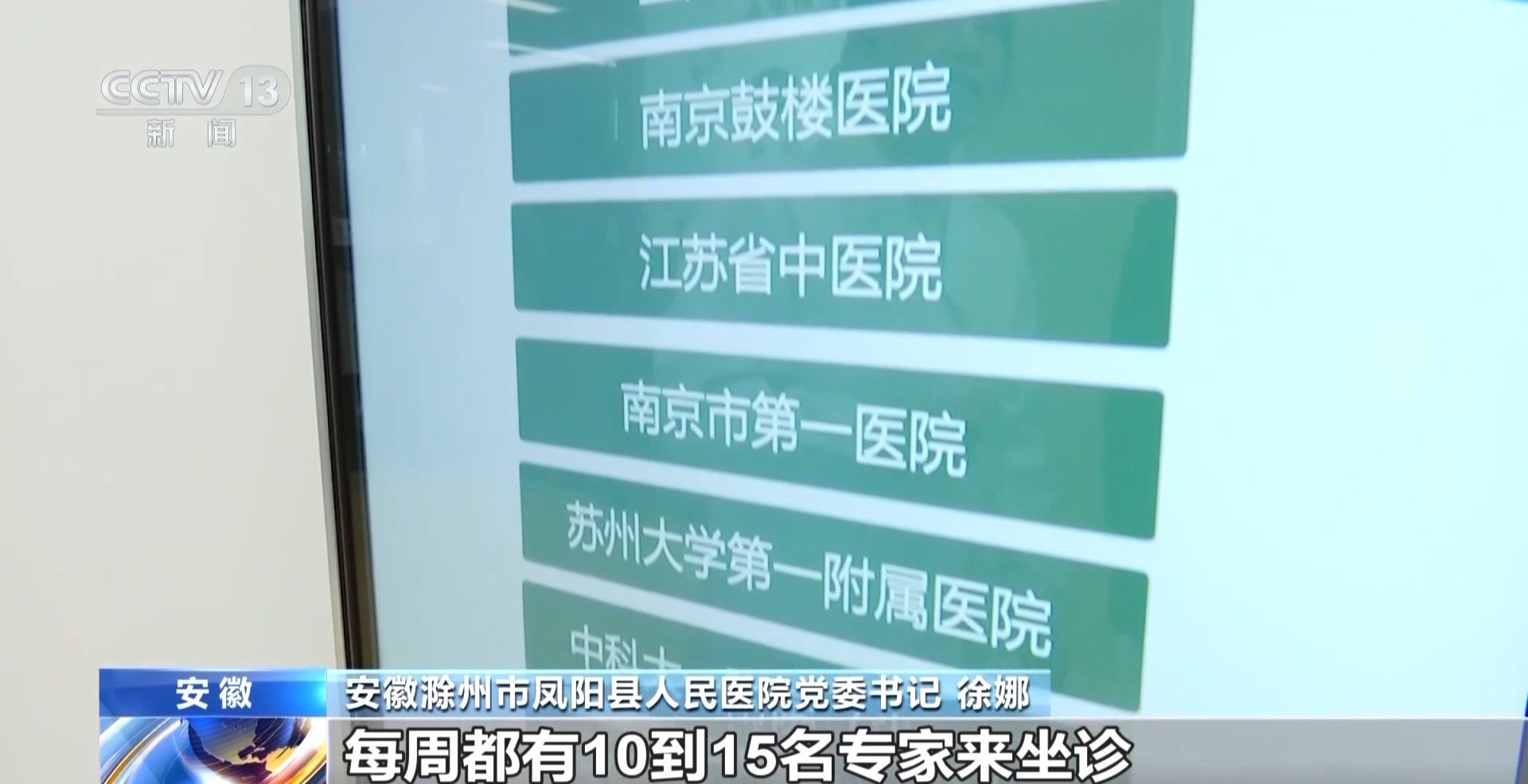 安徽滁州市鳳陽縣人民醫(yī)院黨委書記 徐娜:我們目前已有18個科室對外合作,每周都有10名到15名專家來坐診。
