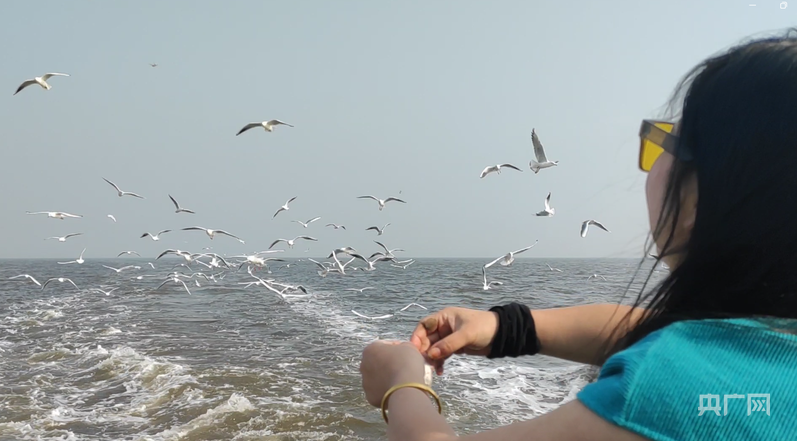 游客在漁船上喂海鷗(央廣網(wǎng)見習記者 安適存 攝)
