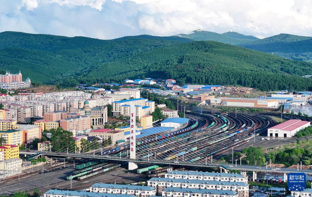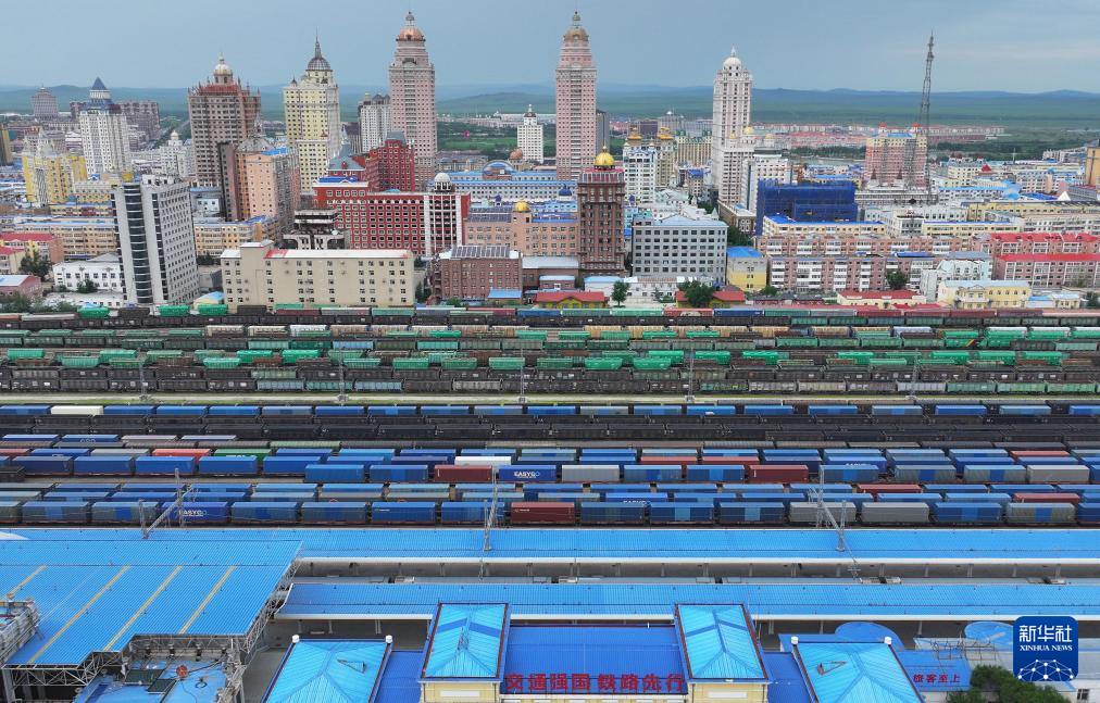 7月21日,一列滿載家用電器的中歐班列駛出中國(guó)鐵路哈爾濱局集團(tuán)有限公司綏芬河站(無(wú)人機(jī)照片)。