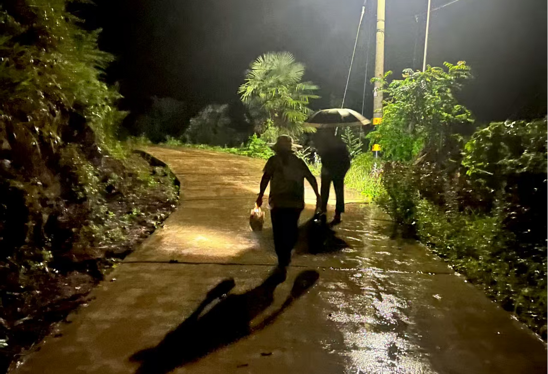 晚上九點(diǎn),簡(jiǎn)單收拾后,村干部陪同揣上常備藥和換洗衣物的兩位老人,深一腳淺一腳走出老屋,車(chē)在雨中行駛了將近一個(gè)小時(shí)才平安抵達(dá)集鎮(zhèn)親戚家。