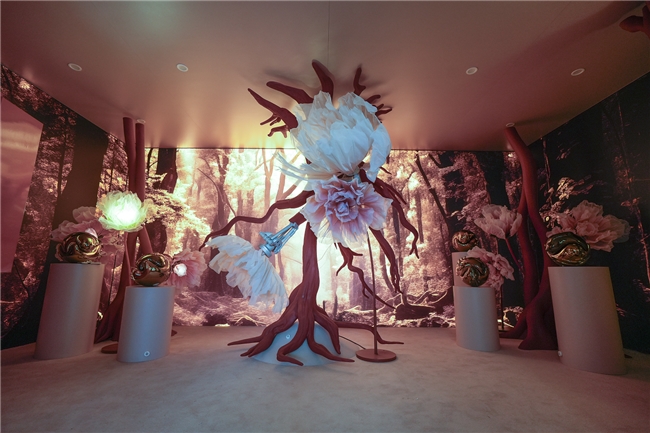 快閃體驗店中最吸睛的當屬“抱抱森林煉丹之旅”沉浸式互動區(qū),等候參與的隊伍蜿蜒數(shù)十米,許多家庭、情侶、朋友結伴前來。互動裝置前,參與者們伸出雙臂,觸發(fā)紅外傳感器,巨大的花朵雕塑隨之緩緩綻放,暖黃色燈光映照著一張張洋溢著驚喜與感動的臉龐。