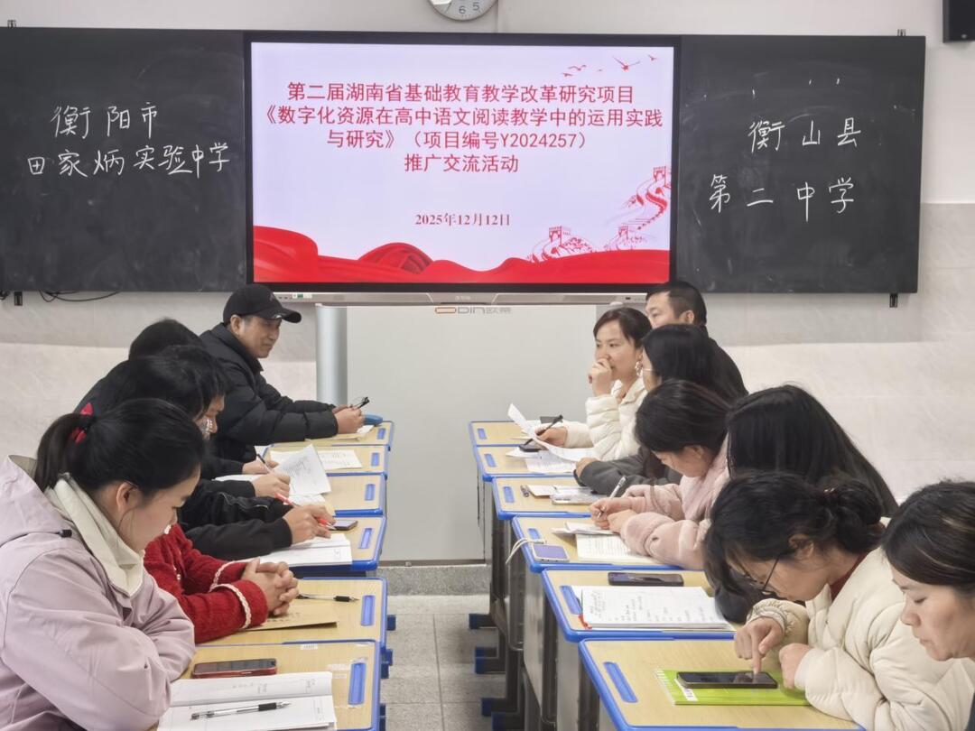 為深入推進省級教學(xué)改革研究項目《數(shù)字化資源在高中語文閱讀教學(xué)中的運用實踐與研究》(項目編號Y2024257)的相關(guān)研究工作,加強成果推廣和運用實踐,衡陽市田家炳實驗中學(xué)項目組成員于12月10日至12日赴岳云中學(xué)、衡山縣第二中學(xué)開展項目研究成果推廣交流活動。