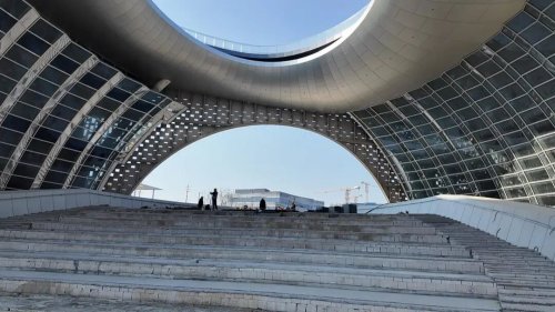 走進(jìn)東翼大堂,陽光穿透落地玻璃灑進(jìn)室內(nèi),屋頂?shù)臒艟咭呀?jīng)安裝完畢。多功能廳中的伸縮舞臺(tái)也已就位,未來這里能夠滿足各類演出需求。濱河步道露天劇場(chǎng)兼具公共公園和表演場(chǎng)所的雙重功能,可容納數(shù)百人。